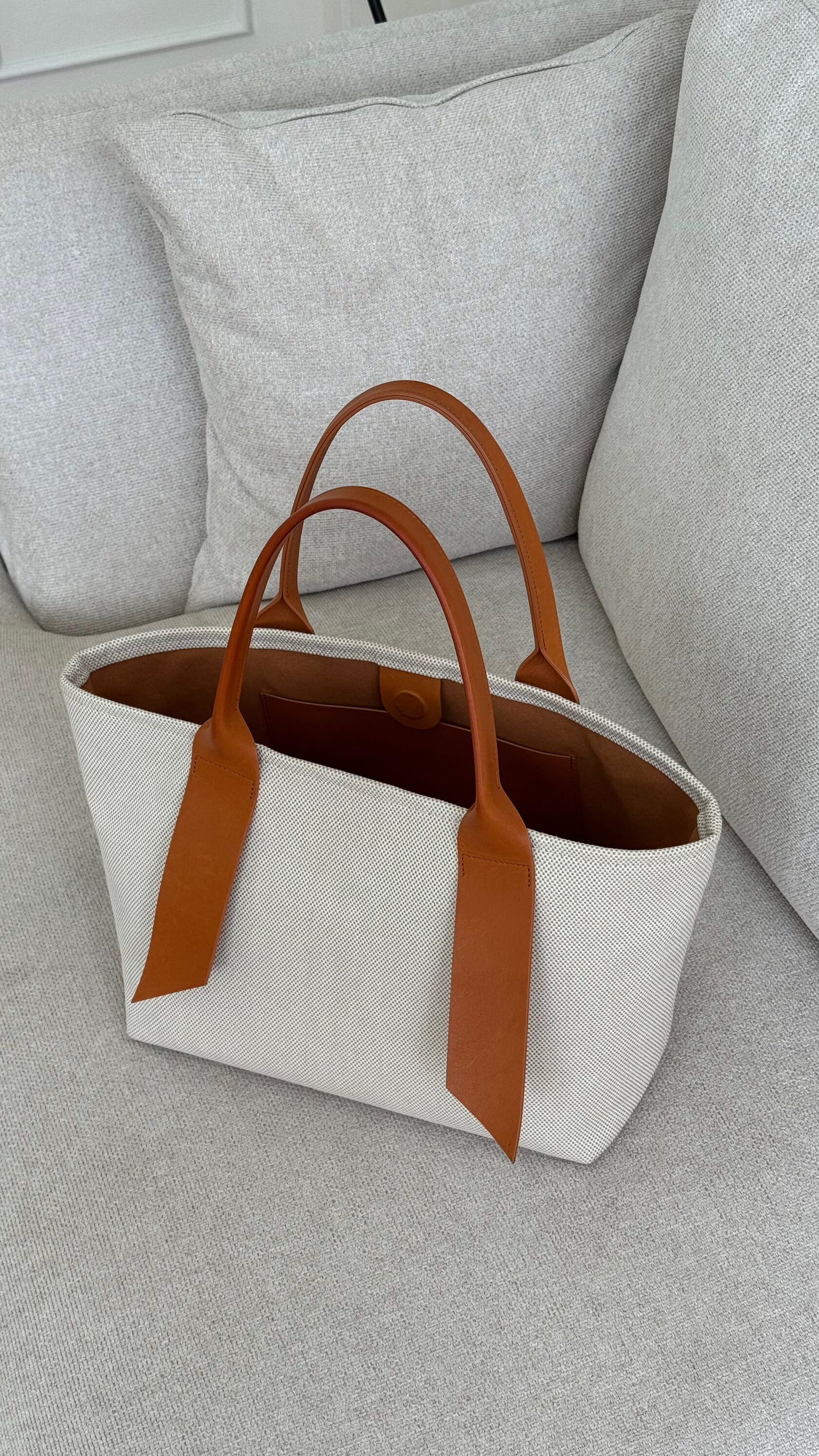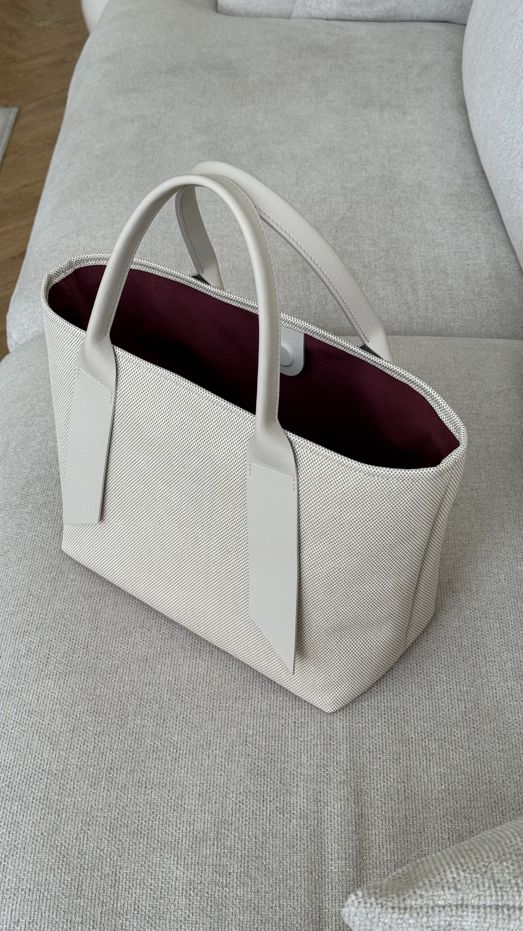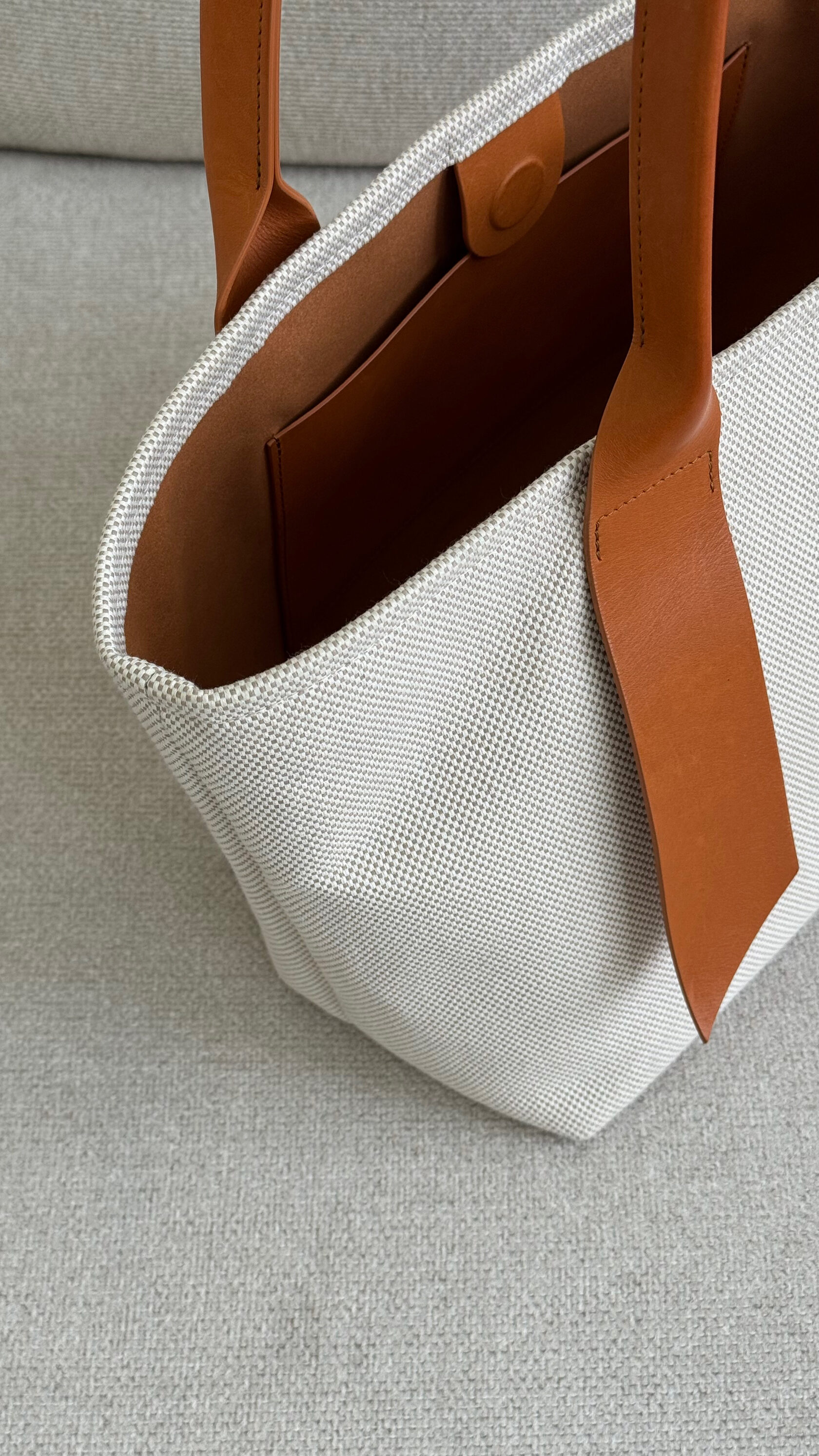 Шоппер очень универсален, потому что долго и тщательно подвергался конструктивным изменениям для поиска идеальных размеров: он легко вместит ноутбук, форму в тренажёрный зал и даже минимум вещей, чтобы спонтанно сбежать из города на пару дней, а маленькую сумочку-косметичку внутри можно использовать для ценных вещей и носить отдельно